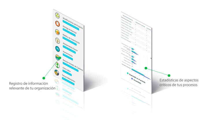 Facilita el seguimiento de normativa vigente, compromisos y permisos ambientales, agilizando su monitoreo y control.